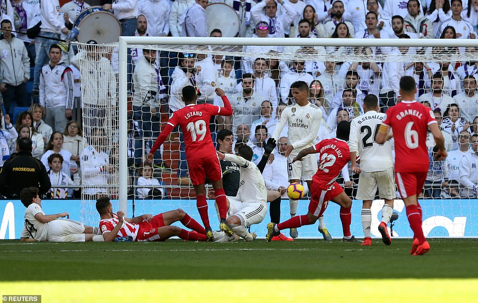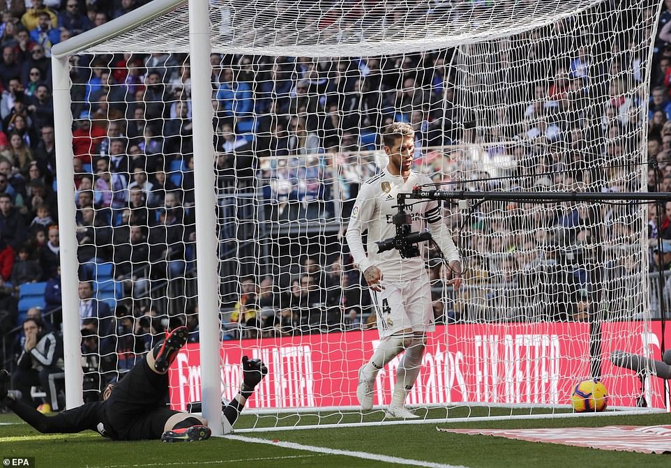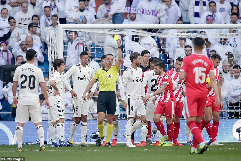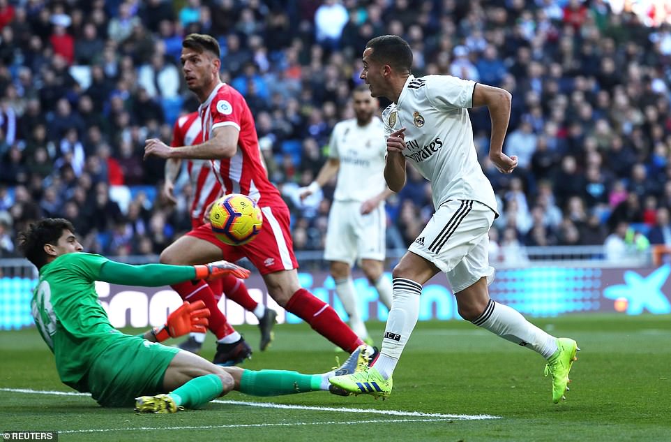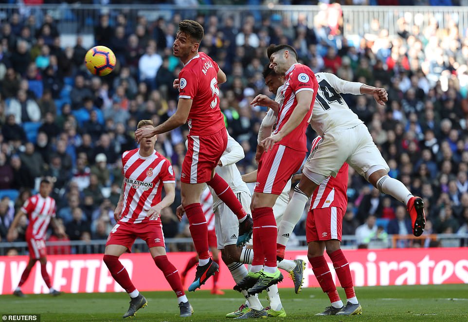 Lucas Vazquez ayaa daqiiqadii 18-aad ee ciyaarta ku dhawaaday inuu hoggaanka u dhiibo kooxdiisa kaddib markii uu kubadda si toos ah ula hor tagay goolhayaha Girona balse darbadiisa ayaa dhaafi weyday goolhayha kooxda martida ahayd.