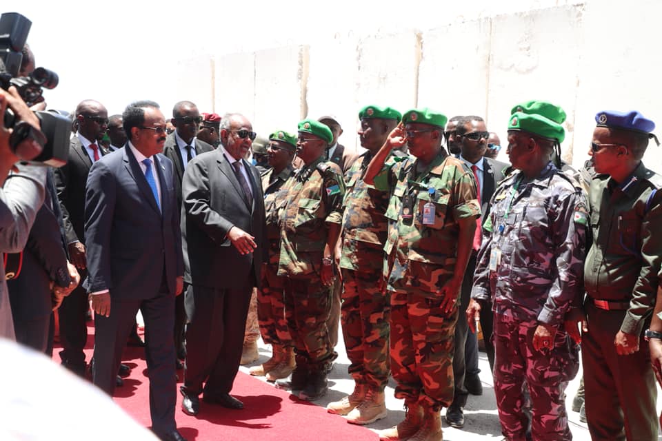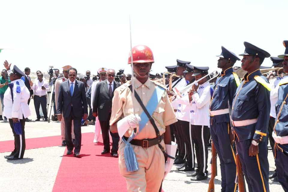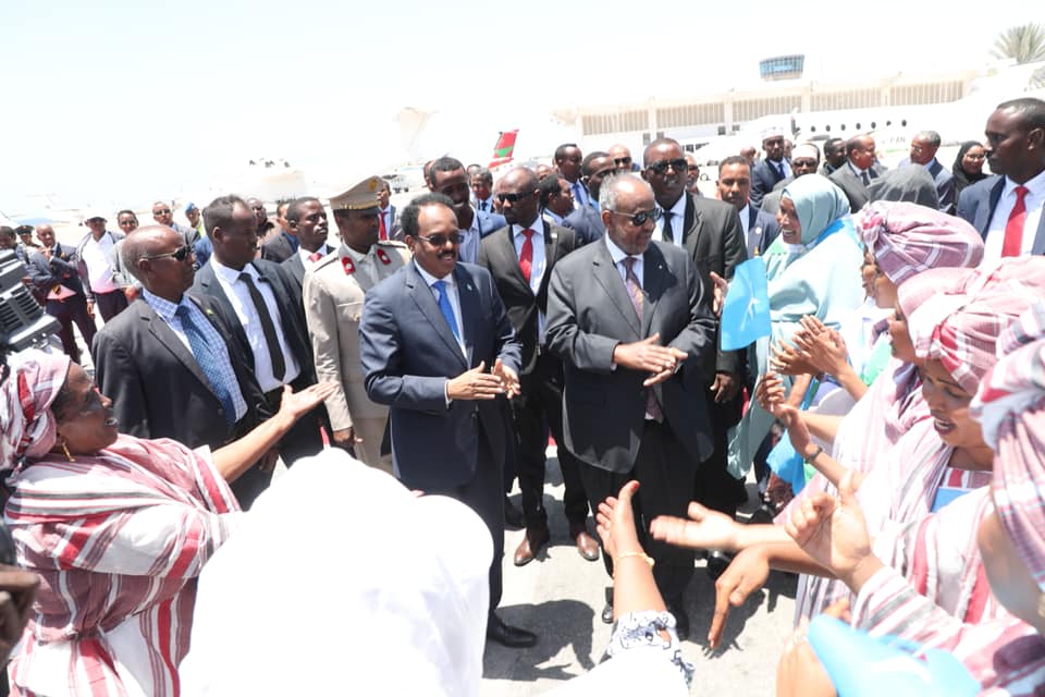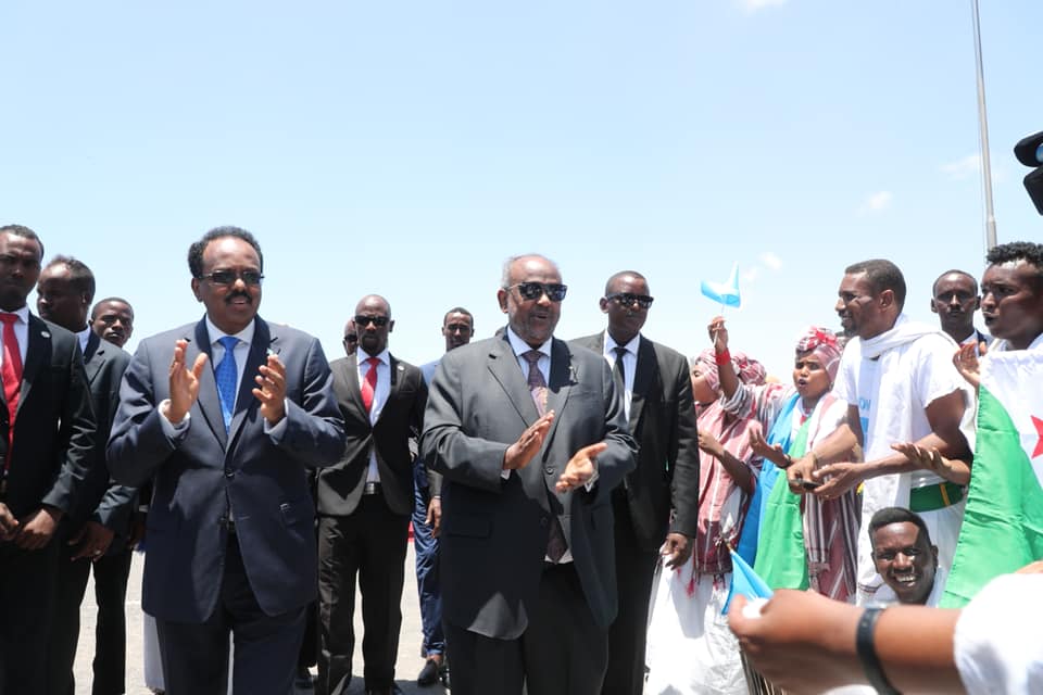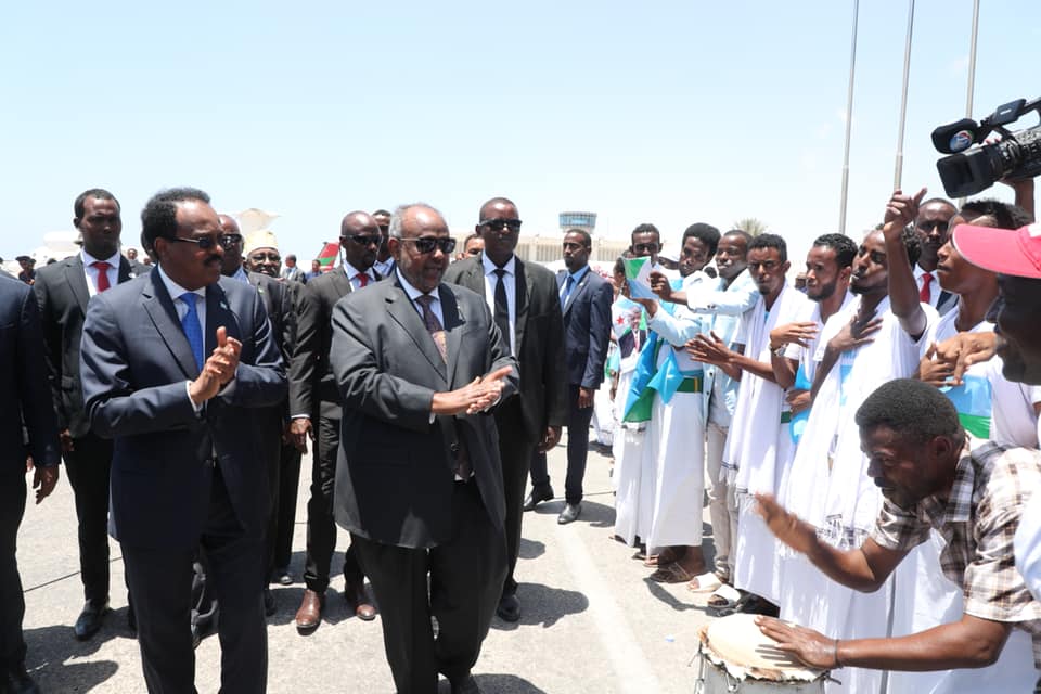 Madaxweynaha dalka Jabuuti ayaa waxaa garoonka diyaaradaha ku soo dhoweeyay Madaxweynaha Soomaaliya Maxamed Cabdulaahi Farmaajo iyo mas’uuliyiin kale.