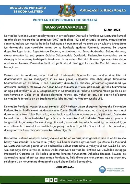 Puntland iyo Jubbaland oo diiday go’aankii DF ku ceyrisay Imaaraadka