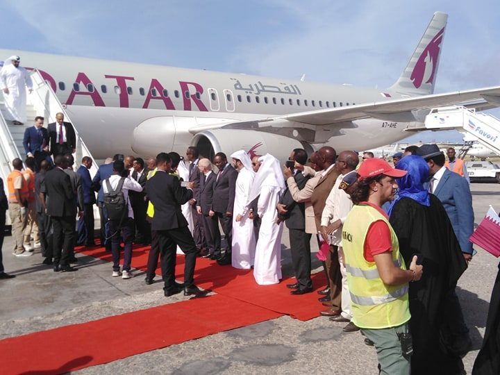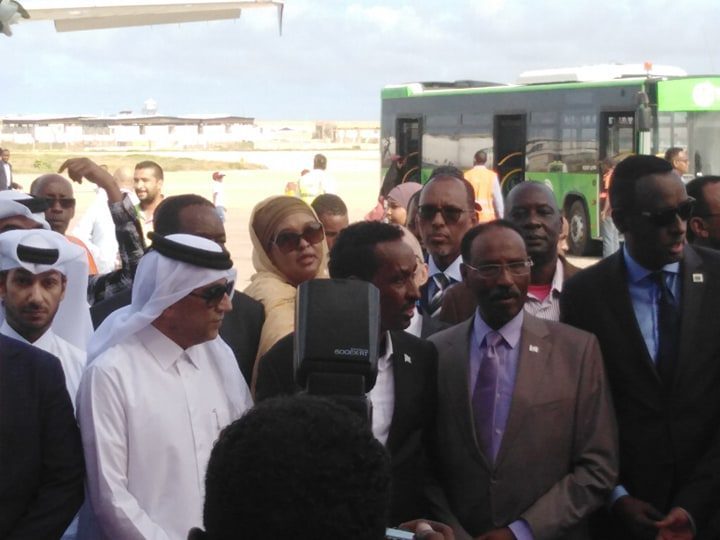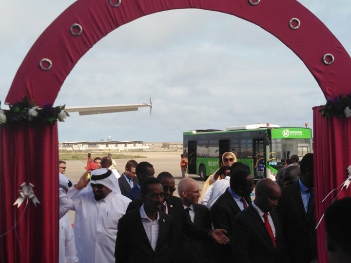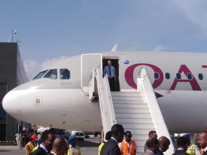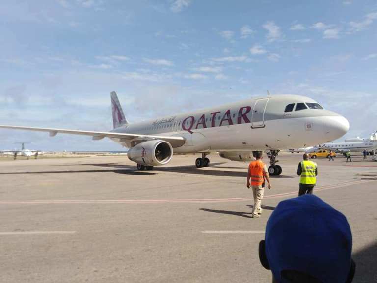 Shirkadda Diyaaradaha Qatar Airways ayaa rakaabkii ugu horeeyay keentay Magalada Muqdisho,kuwaas oo isugu jira Soomaali iyo Ajaanib, iyada oo rakaab kale ka qaadeysa Magalada Muqdisho.