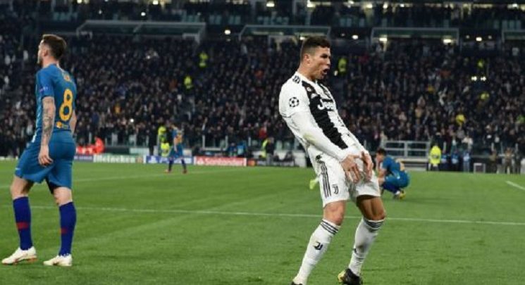 Cristiano Ronaldo ayaa saddexleey ku xaaqay Atletico Madrid isagoona Juventus u soo saaray wareega sideed dhammaadka Champions League.