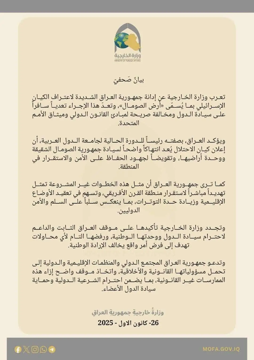 Qoraalo ay siyaabo kala duwan u soo kala saareen ayey ku sheegeen in talaabada Israel ay tahay mid baal marsan qaanuunka caalamiga ah, ayna si cad ugu xad gudubtay madax banaanida iyo midnimada dhuleed ee Somalia