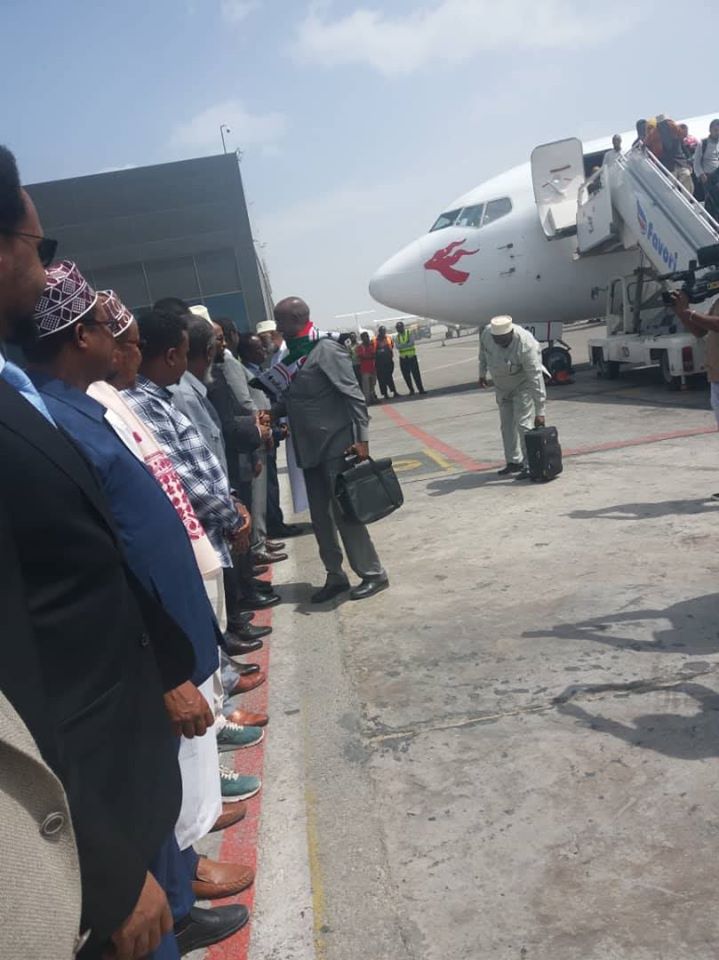 Wafdigan ayaa sida gargaar bani’aadanimo oo loogu talagalay dadka ay saameeyeen fatahaadihii dhowaan ku dhuftay qeybo ka mid ah Soomaaliya, waxaana garoonka ku soo dhoweeyey xildhibaano ka tirsan baarlamaanka Soomaaliya iyo mas’uuliyiin kale.