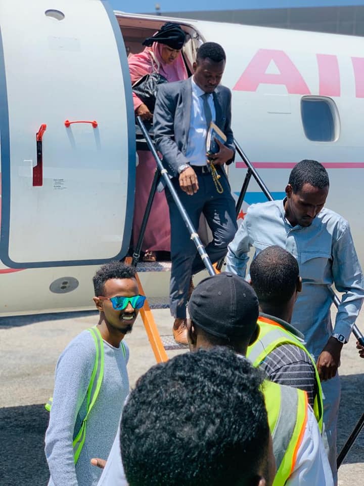 Garoonka diyaaradaha Aadan Cadde uu maanta kasoo degay Wariye Cumar Soomane waxaa halkaasi si diiran ugu soo dhaweeyay qaar kamid ah wariyaasha ka howlgala magaalada Muqdisho.