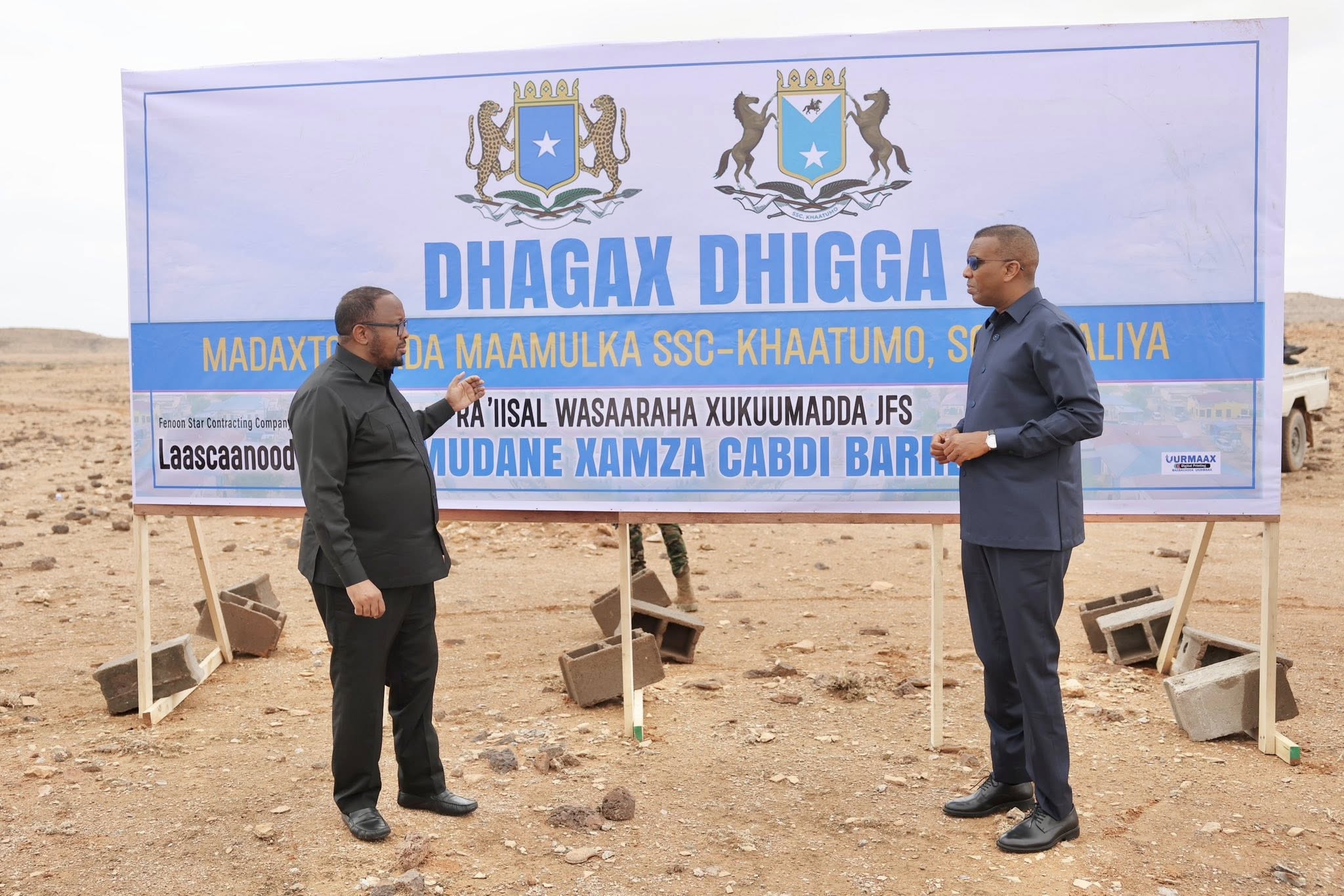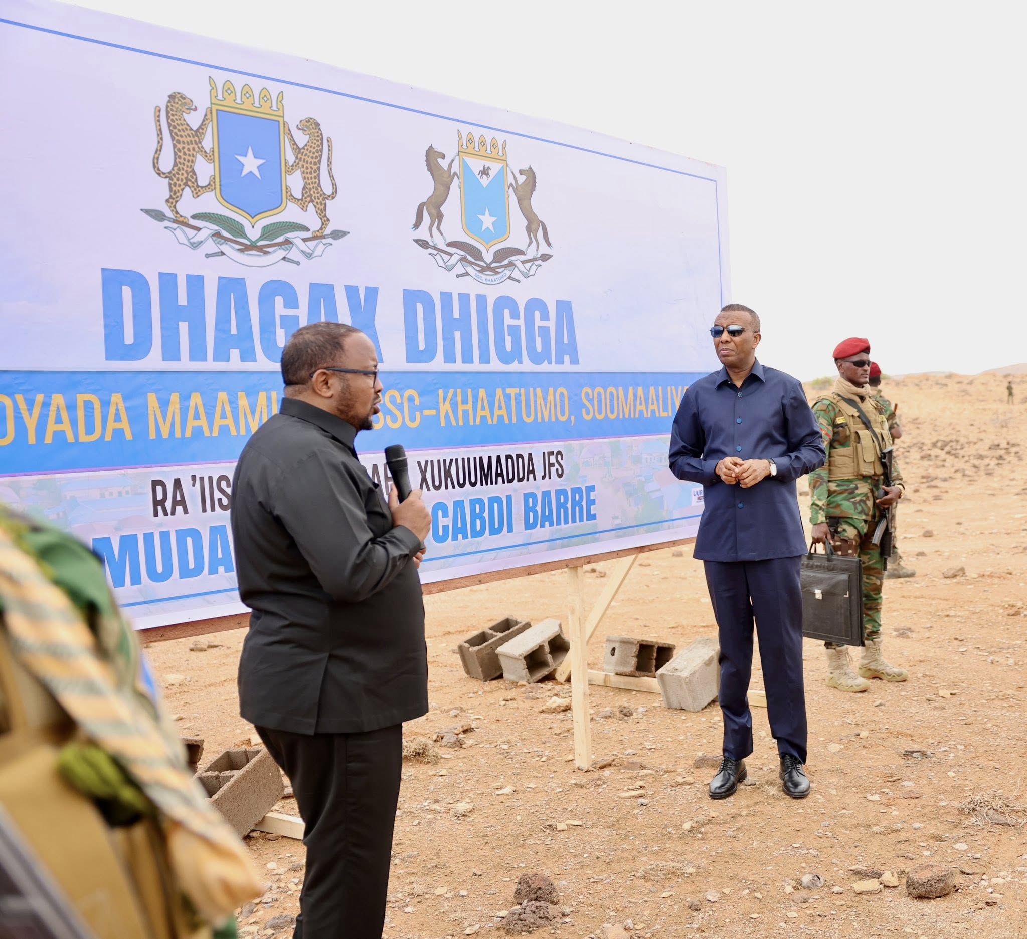 Ra’iisul Wasaaraha Xukuumadda Federaalka Soomaaliya, Xamza Cabdi Barre, oo uu wehliyo Hoggaamiyaha Maamulka SSC—Khaatumo, Cabdulqaadir Axmed Aw Cali (Firdhiye) ayaa maanta si rasmi ah u dhagax dhigay Siddeed mashruuc oo muhiim ah.